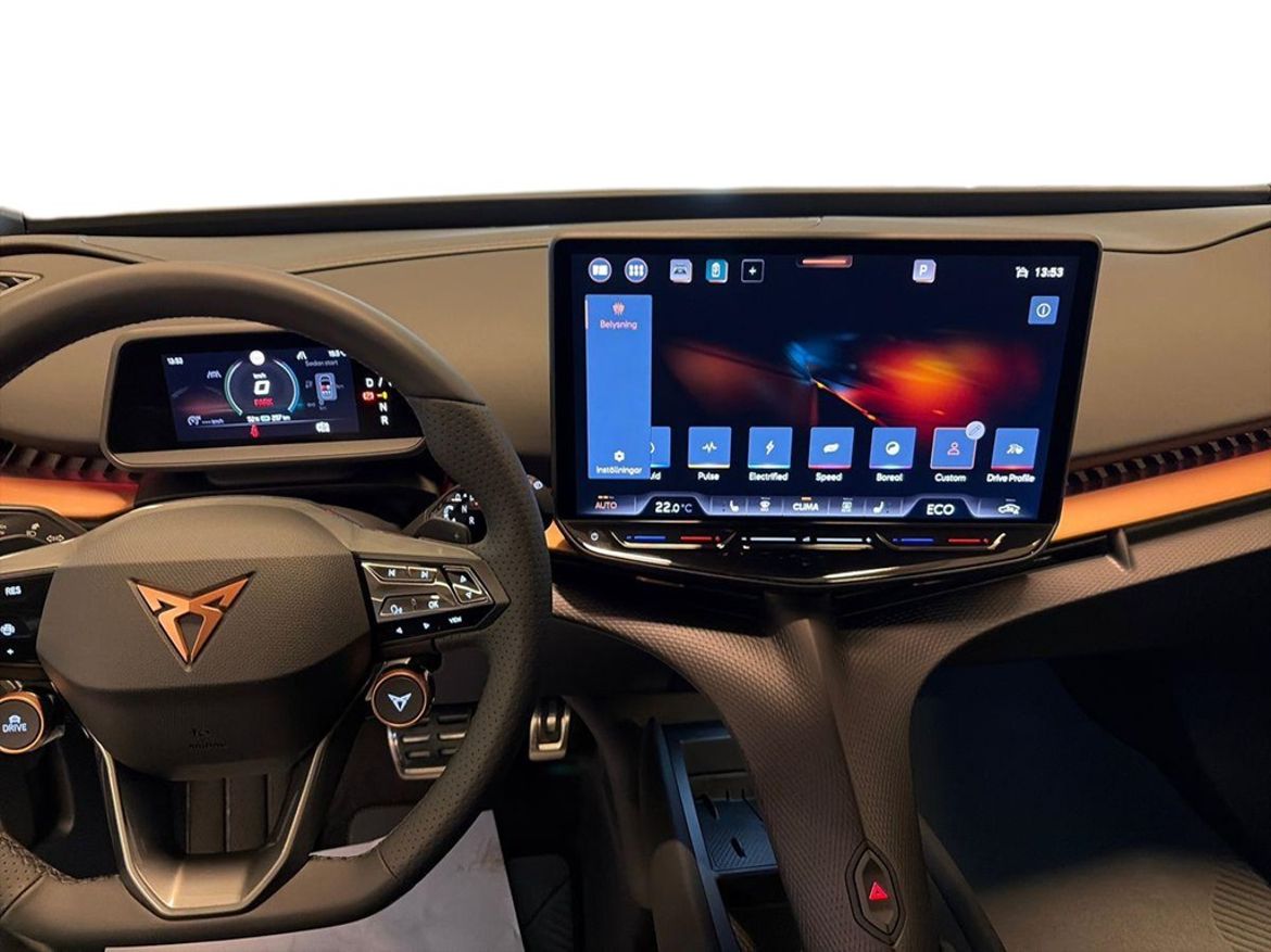 Med sina skarpa linjer, upplysta CUPRA-detaljer och futuristiska formspråk sticker Tavascan ut direkt på vägen. Den sportiga siluetten och de karakteristiska LED-ljusen ger bilen ett kraftfullt och exklusivt uttryck – en elbil som verkligen syns.