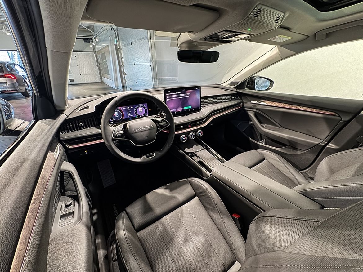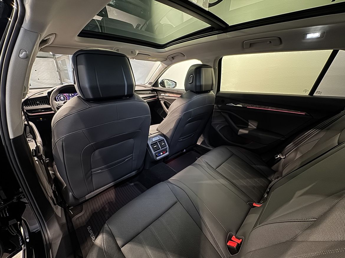I denna Superb L&K får du ventilerade lädersäten med massage, elstolar med minne fram, tre zoners klimat med sätesvärme fram och bak samt integrerad dragkrok. Bilen är även utrustad med en avancerad 360 kamera som är diskret integrerad i utrustningspaketen och gör parkering och manövrering tryggt och enkelt.