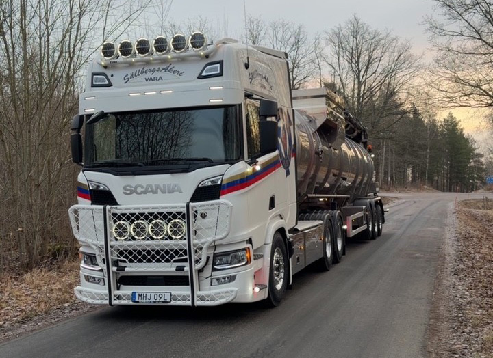Innan grönskan hunnit ta fart i skog och mark har vi fångat en bild på en ny leverans till Arne Sällberg & Söner Åkeri AB i Vara. Dragbilen är en Scania R500 6×4 med lyftbar tandem och hydraulik, monterad av VM Tarm i Danmark. Den är anpassad för att kunna utföra sina uppdrag tillsammans med trailer, även den från VM Tarm. Vi tackar för förtroendet och passar samtidigt på att önska åkeriet en Glad Påsk!