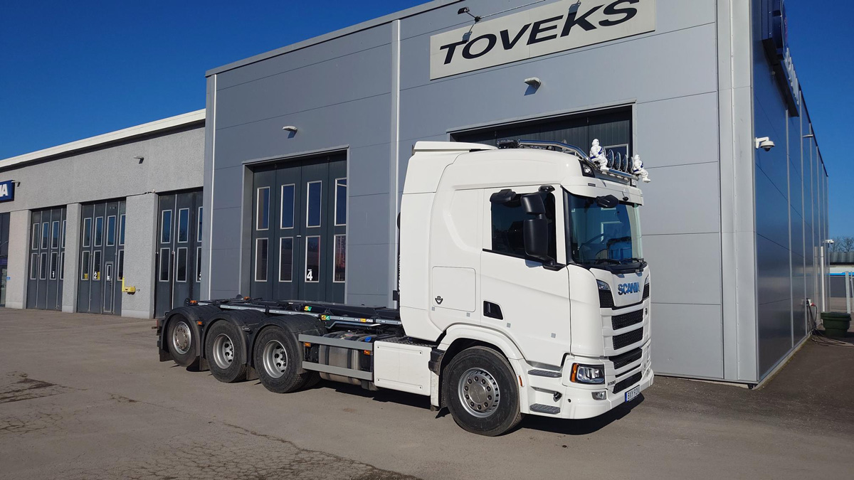 Vi har levererat en ny Scania R590 8×4*4 lastväxlare till Wigholms Åkeri i Dala AB, Stenstorp. Byggnationen kommer från JOAB i Göteborg och fordonet är även utrustat med ReCoDrive monterat av JPC hydraulik, Ösmo. Leveransen är genomförd av oss på Toveks Lastbilar.